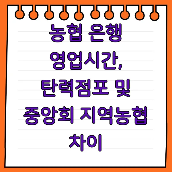 농협 은행 영업시간 완벽 분석: 탄력점포, 중앙회, 지역농협 차이점까지!
