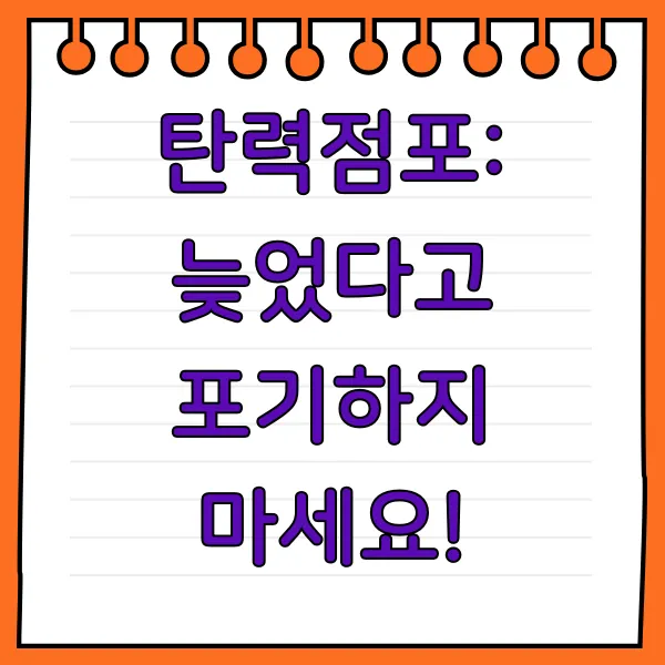 정말 간단하죠? 이제 늦었다고 포기하지 마시고, 탄력점포를 적극 활용해 보세요!